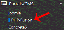 4. On the left side of your screen you should locate the "Portal/CMS" category. Click on it and then click on the "PHP-Fusion" link that will appear.