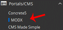 4. On the left side of your screen you should locate the "Portal/CMS" category. Click on it and then click on the "MODX" link that will appear.