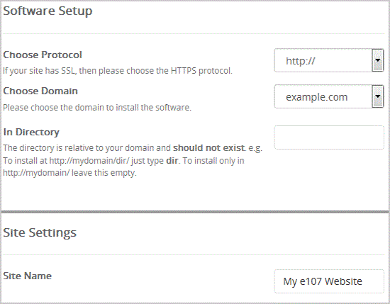 - Site Name: Enter the name of your website, such as "e107".