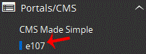 4. On the left side of your screen you should locate the "Portal/CMS" category. Click on it and then click on the "e107" link that will appear.