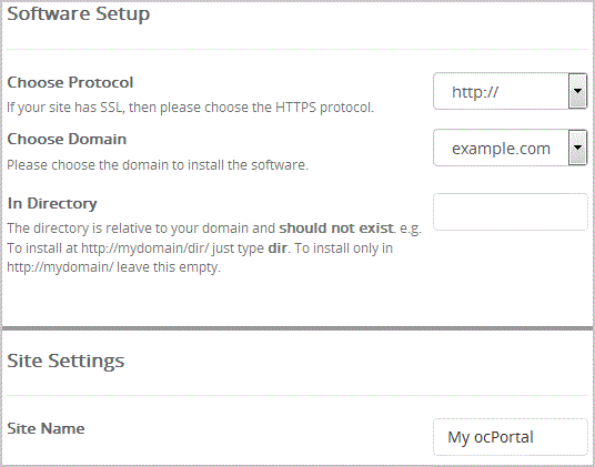 • Site Name: Enter the name of your website, such as "ocPortal".