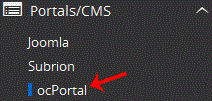 4. On the left side of your screen you should locate the "Portal/CMS" category. Click on it and then click on the "ocPortal" link that will appear.