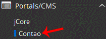 4. On the left side of your screen you should locate the "Portal/CMS" category. Click on it and then click on the "Contao" link that will appear.