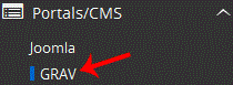 4. On the left side of your screen you should locate the "Portal/CMS" category. Click on it and then click on the "GRAV" link that will appear.