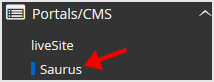 4. On the left side of your screen you should locate the "Portal/CMS" category. Click on it and then click on the "Saurus" link that will appear.
